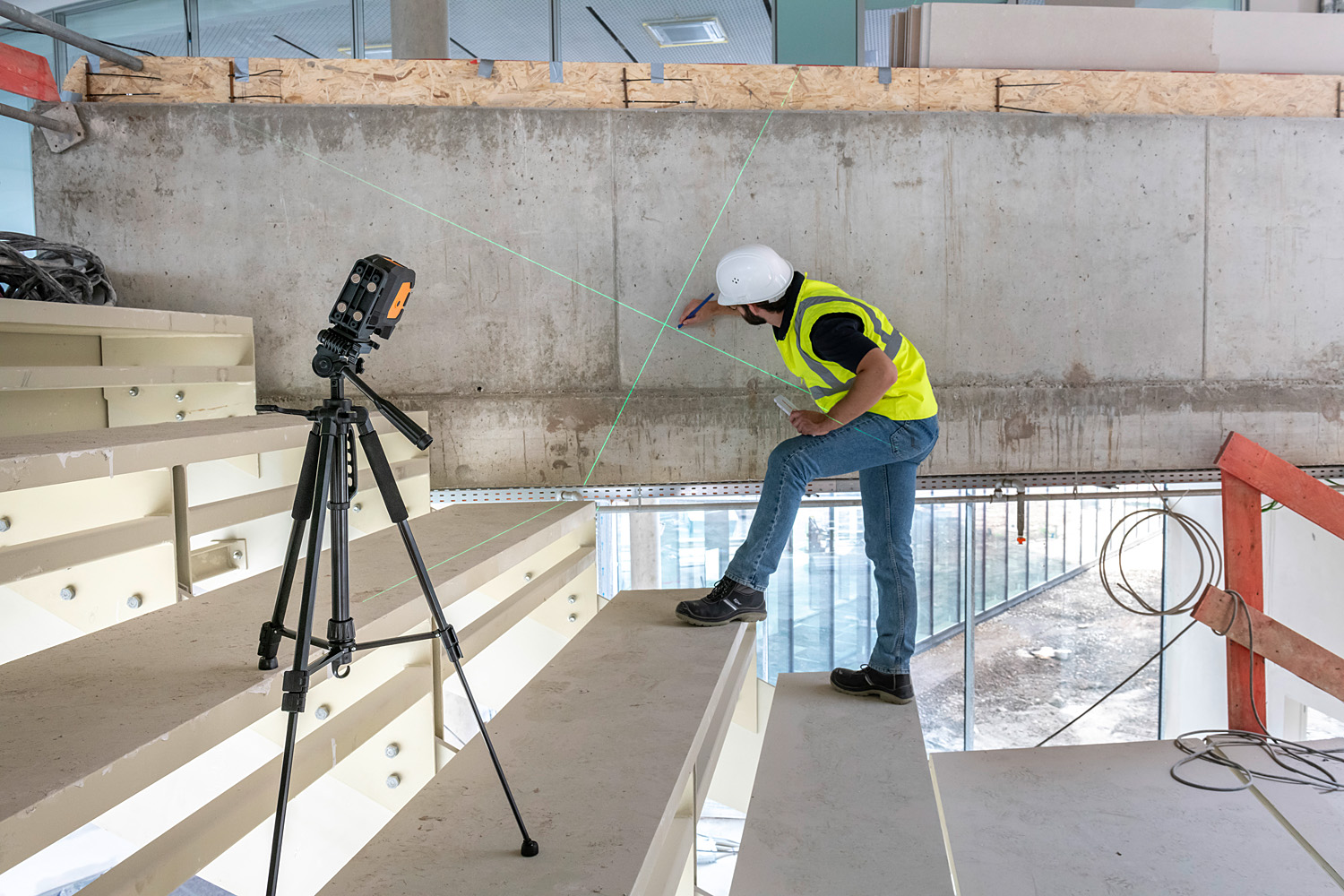 Önbeálló zöld vonallézer, kimagaslóan jól látható lézervonallal.