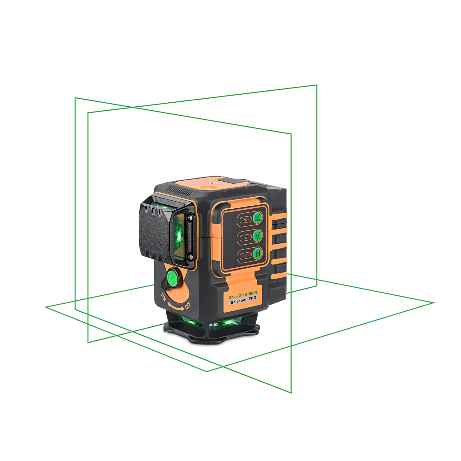 A Geo6-XR Green SP 3 x 360°-os lézervonalat (6 lézerkeresztet) használatát teszi lehetővé.