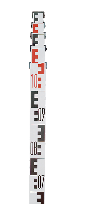 5 méteres összecsukható, teleszkópos szintezőléc.